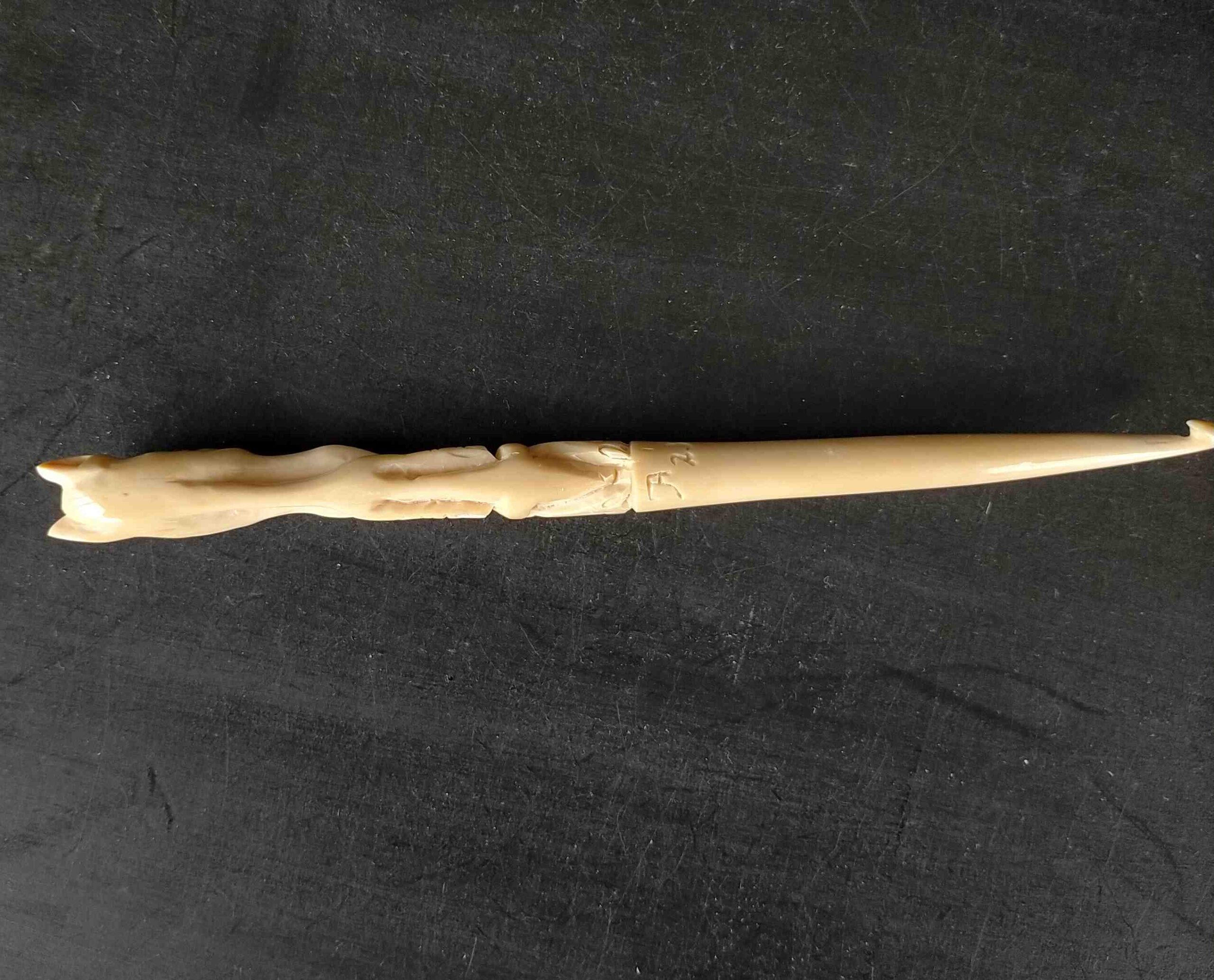 Carved from one whole right Caine tooth from a Narwhal.