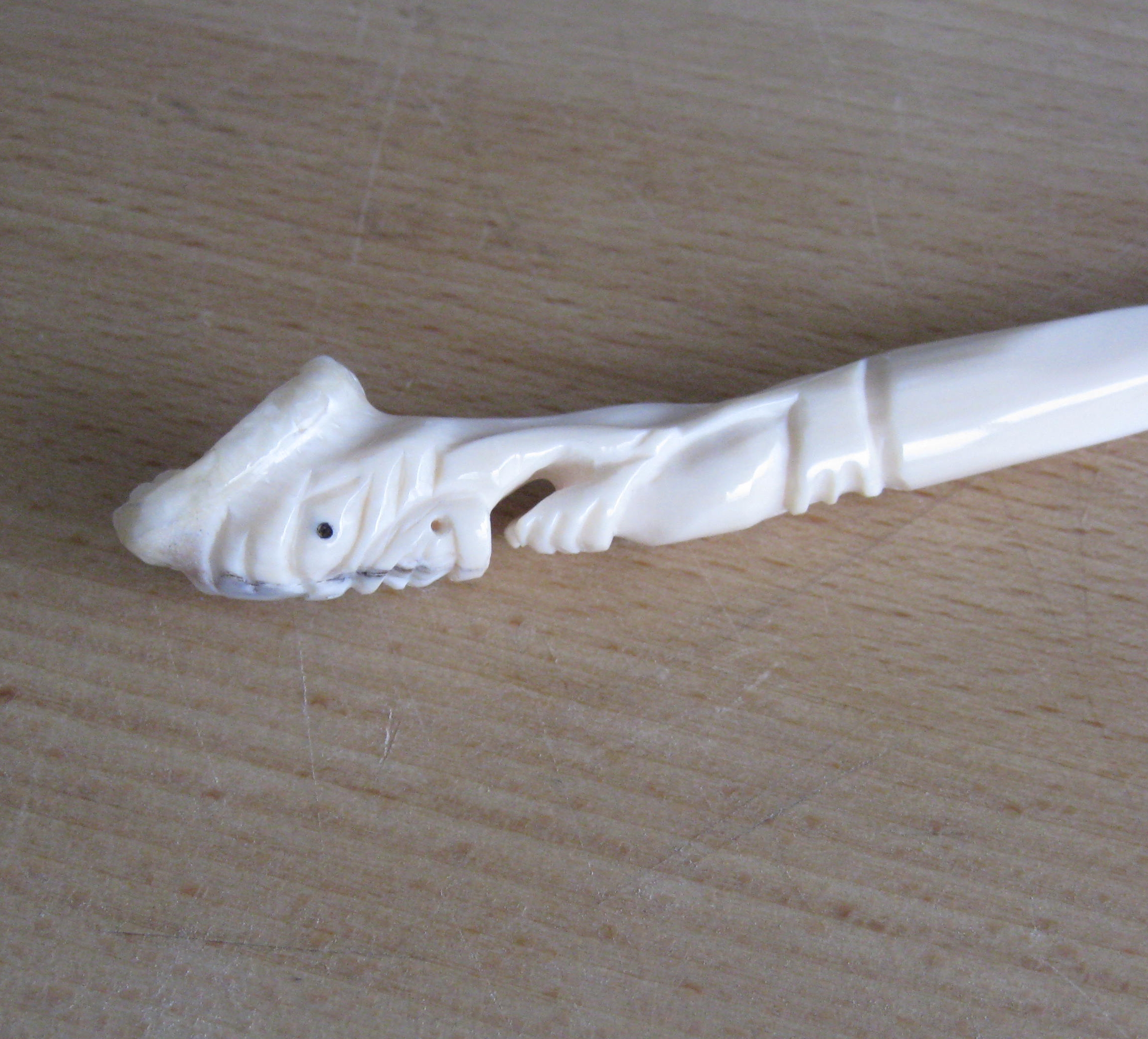 Carved from one whole right Caine tooth from a Narwhal.
