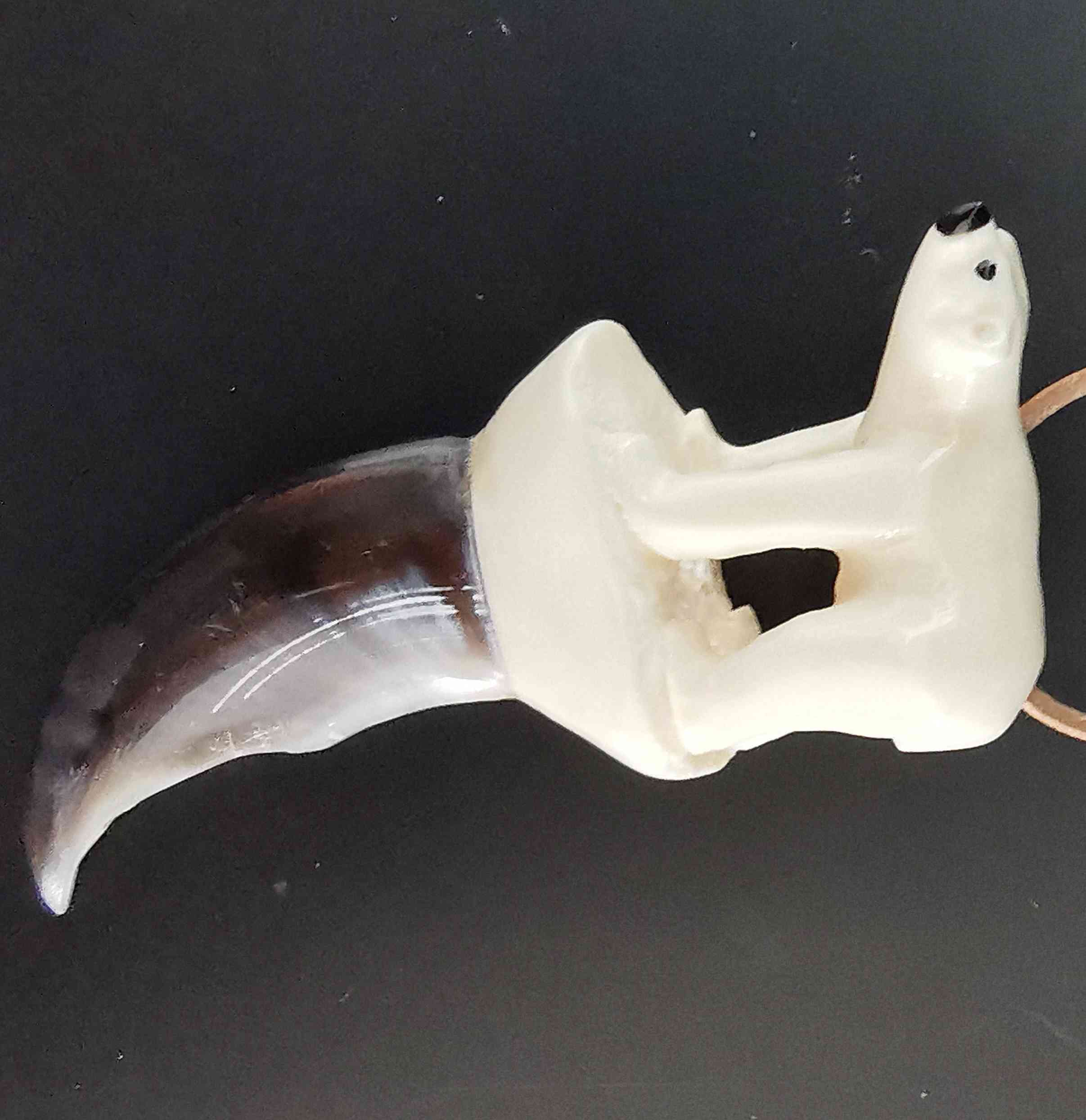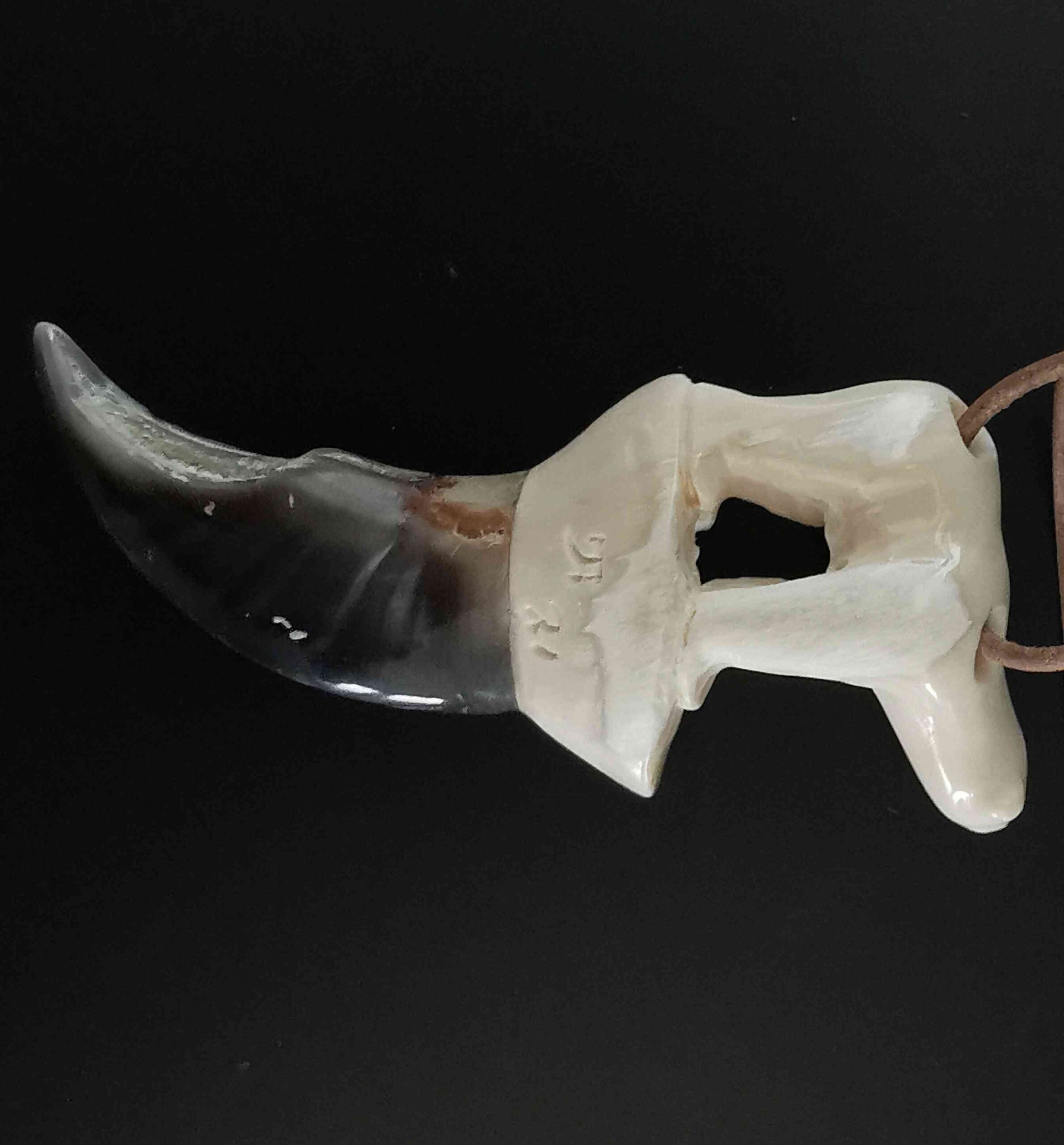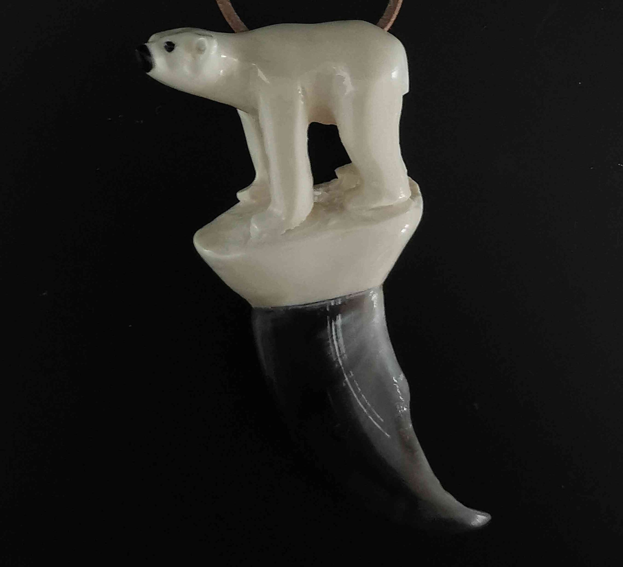Carved in Tusk from Narwhal, mounted on claw from Polar bear.