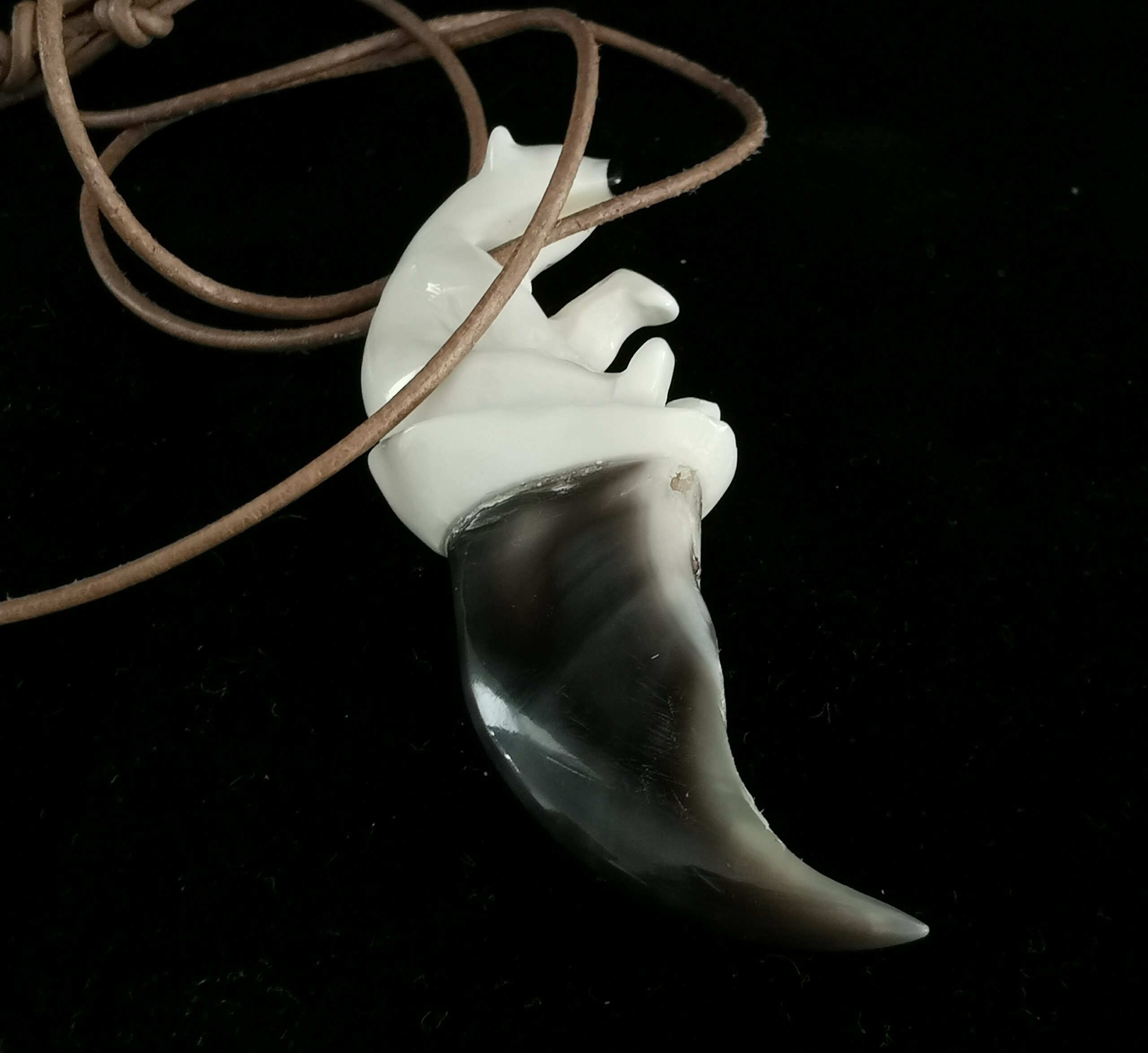 Polar Bear on Claw,Carved in Tooth from Narwhal and claw from Polar bear.