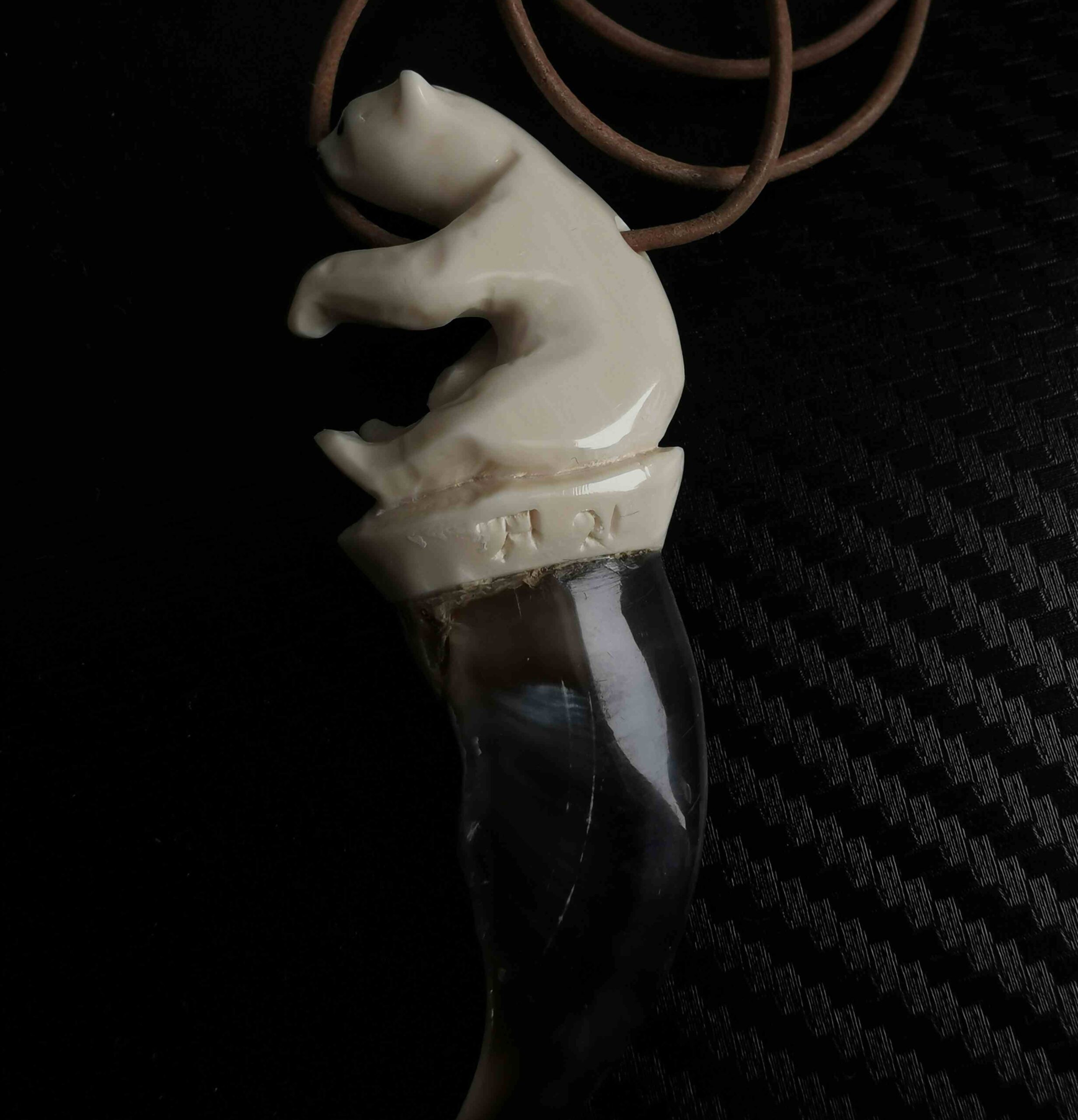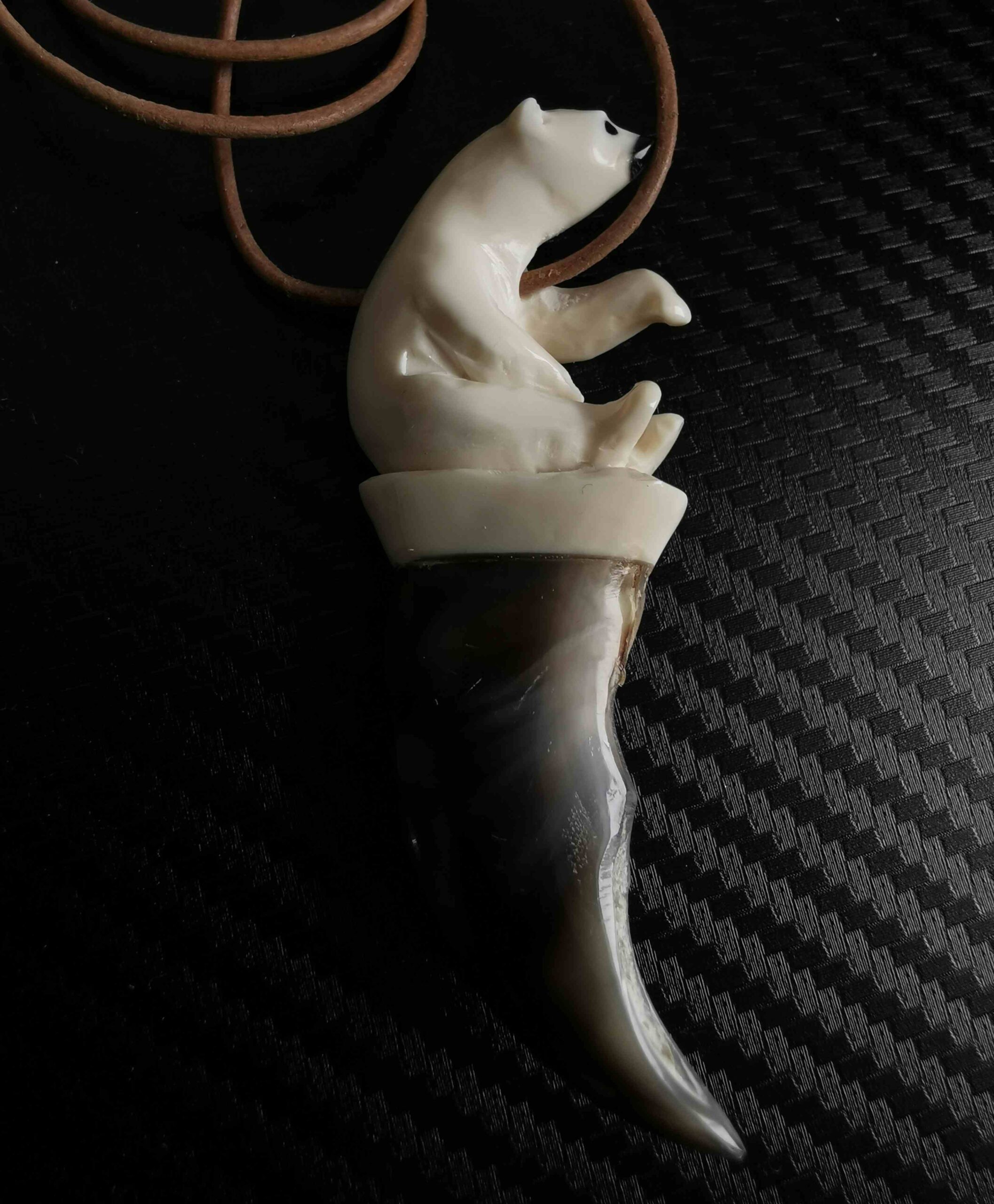 Carved in tusk from narwhal and polar bear claw.