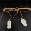 Made from wood, tooth from walrus and leather string.