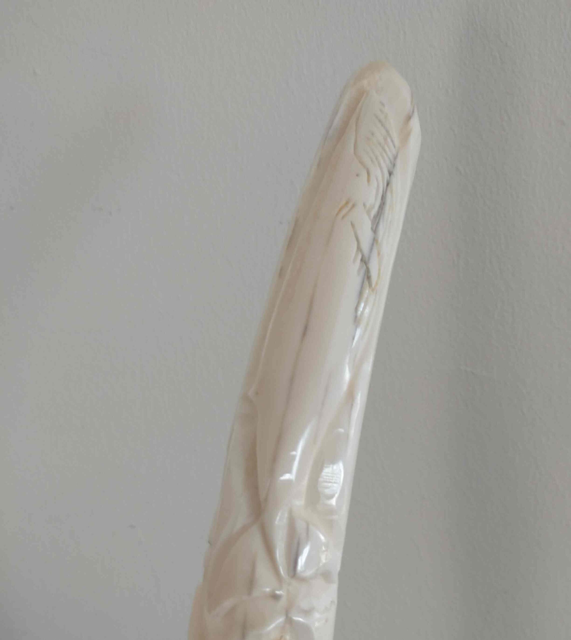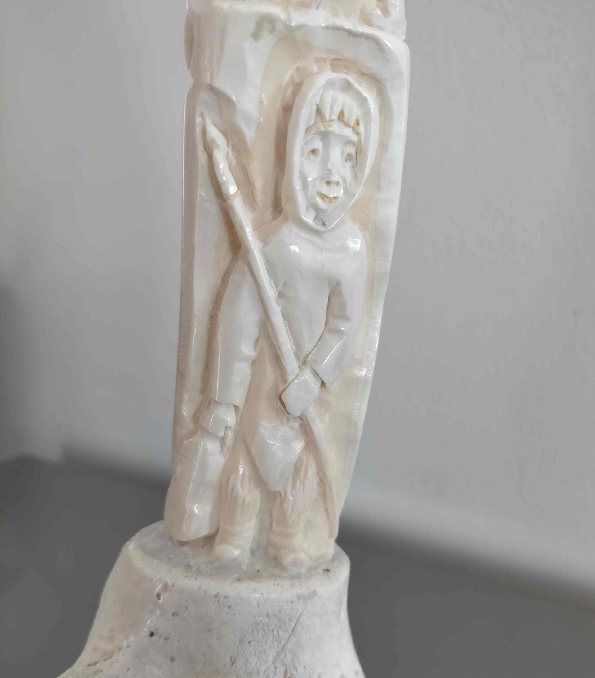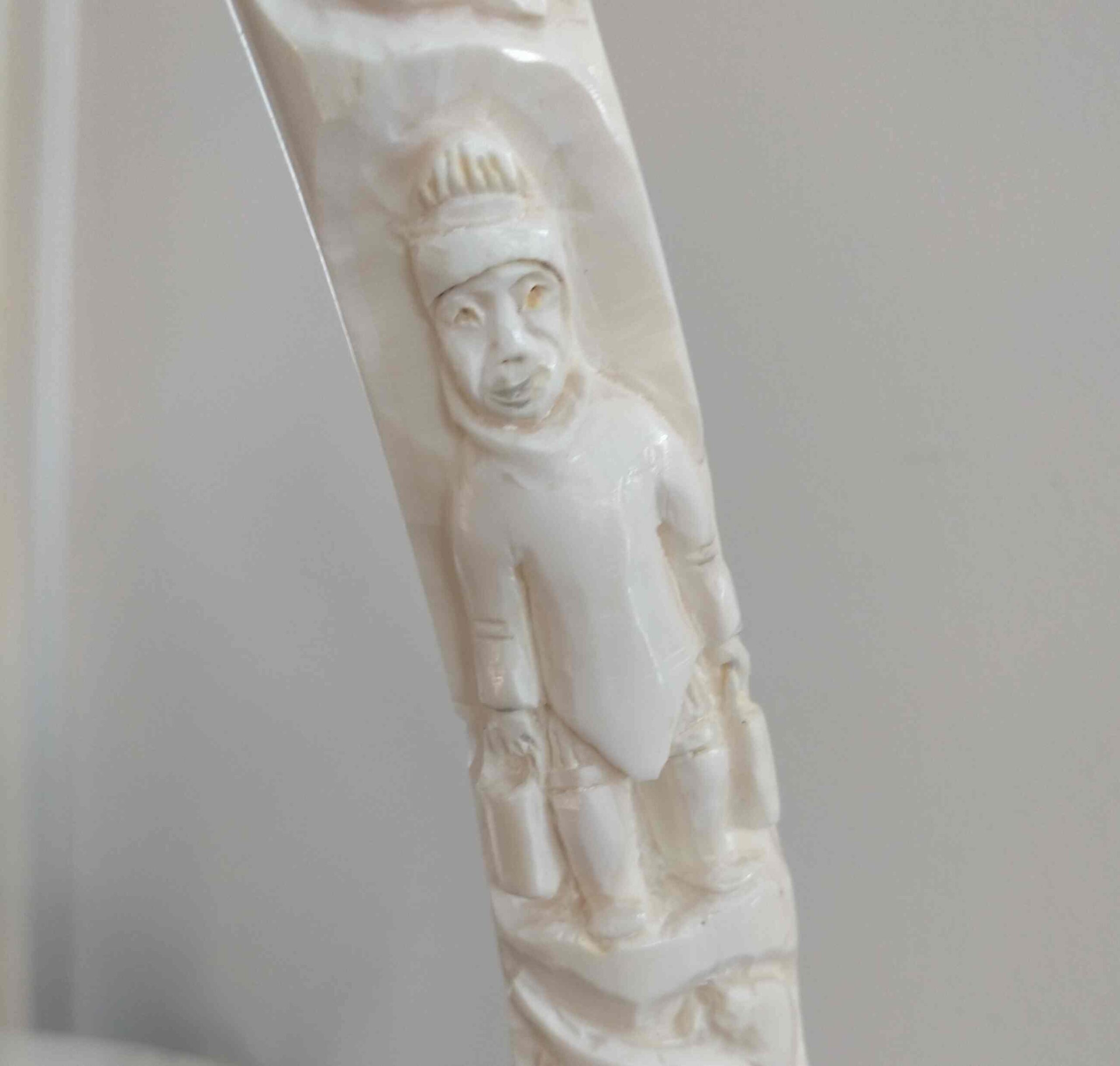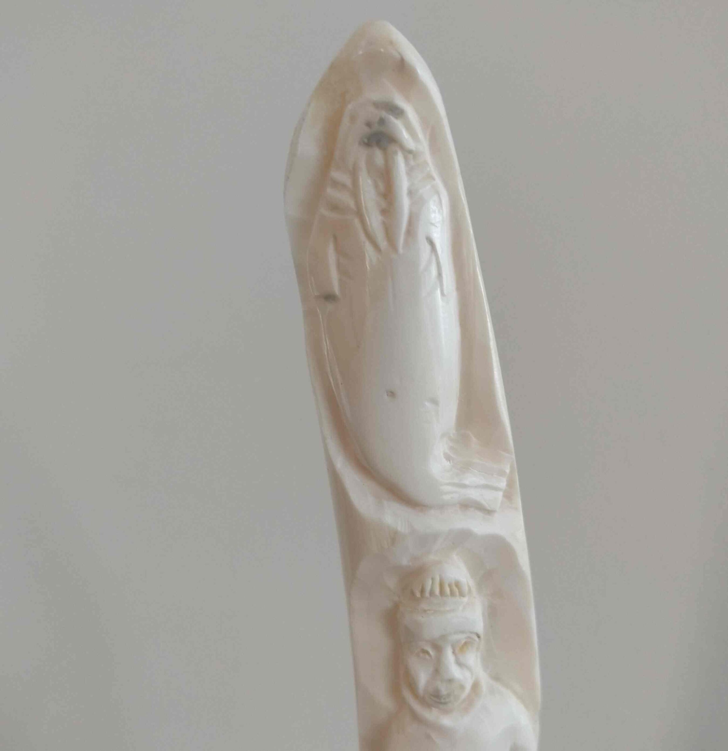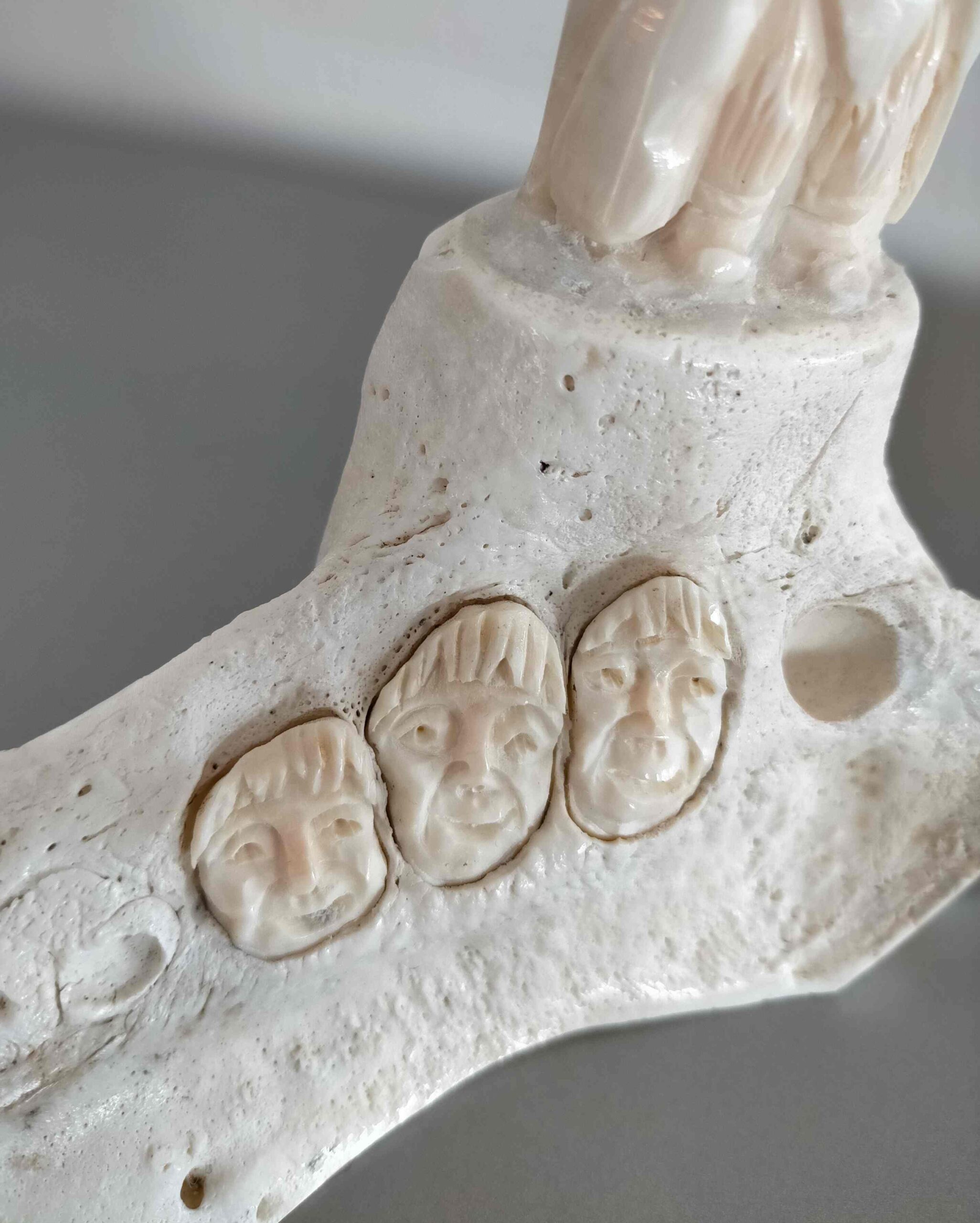 Carved in tusk and jawbone from walrus.