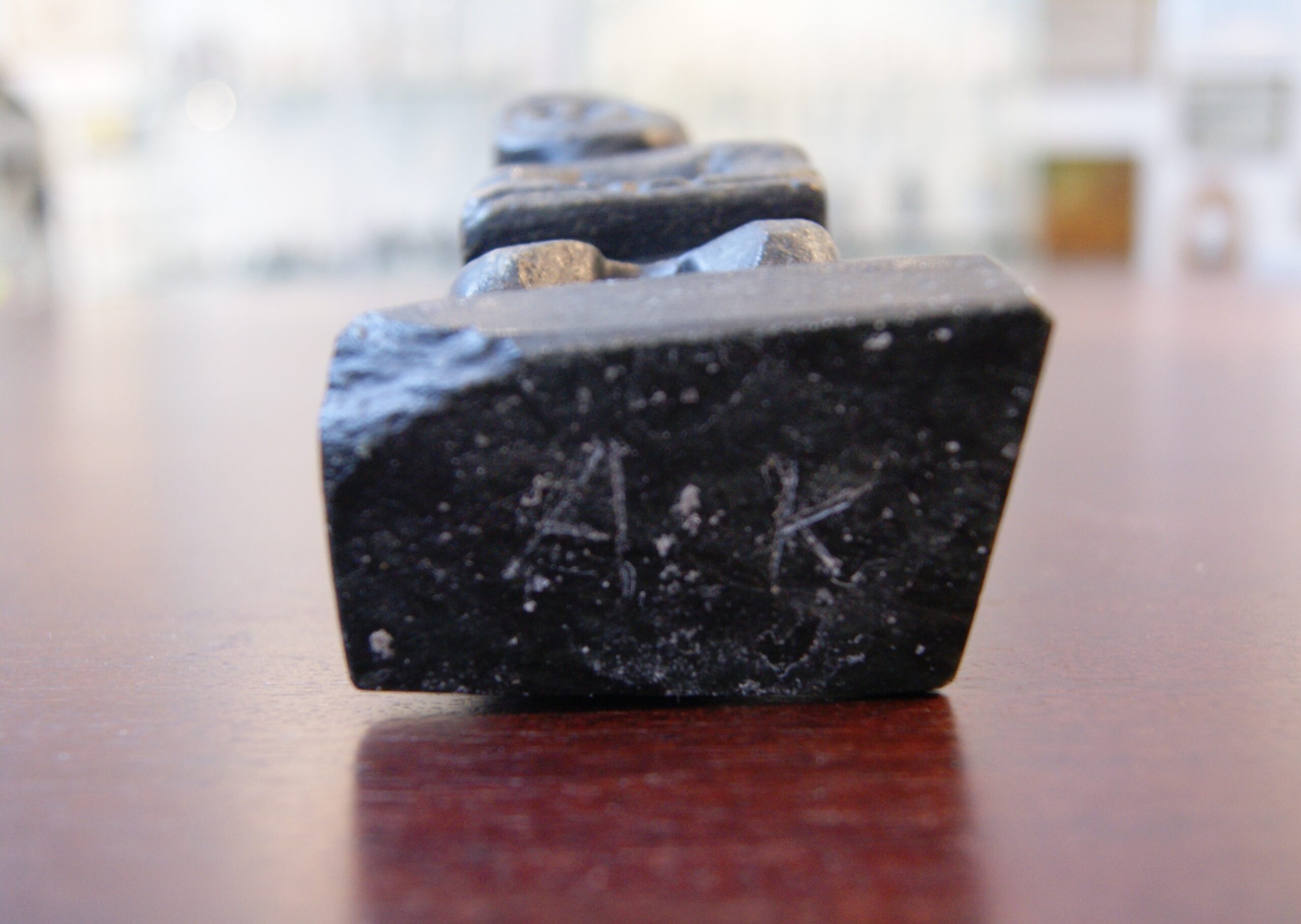 Carved in soapstone.